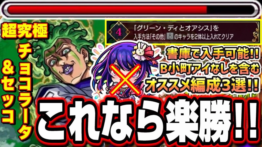 モンスターストライクの「ジョジョコラボ第3弾」【超究極チョコラータ&セッコ】の「パッショーネミッション④」の攻略動画になります!!