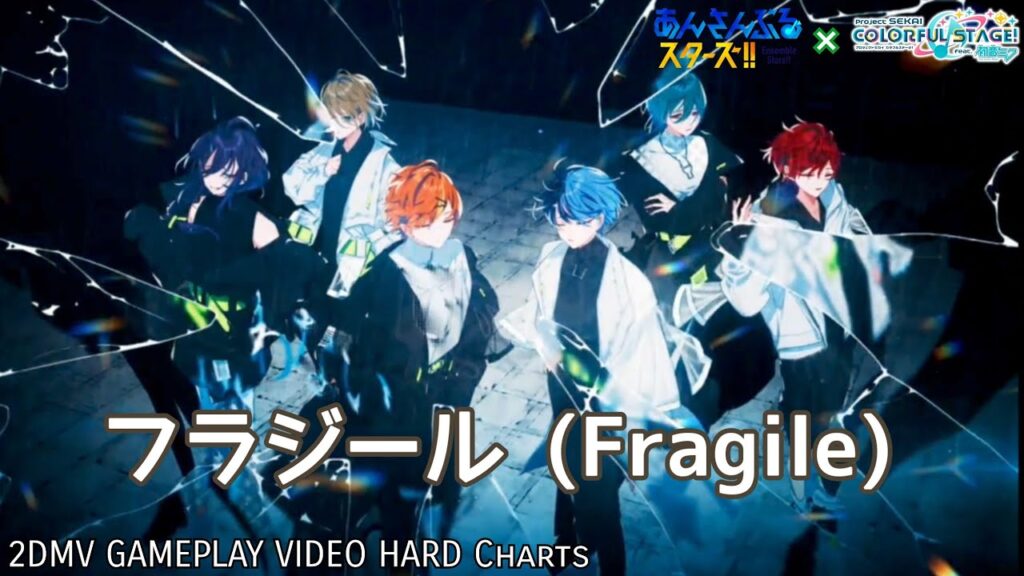 Smartphone (IOS , Android) compatible [スマートフォン対応] Rhythm Game [リズムゲーム] あんさんぶるスターズ!! Music [ あんスタ ] ( Ensemble Stars!! Music [Enstars] ) と project SEKAI [pjsekai] (プロジェクトセカイ) COLORFUL STAGE ! feat.初音ミク (プロセカ)より ALKALOID 【 天城一彩/Amagi Hiiro (CV:梶原岳人) , 白鳥藍良/Shiratori Aira (CV:天崎滉平) , 礼瀬マヨイ/Ayase Mayoi (CV:重松千晴) , 風早巽/Kazehaya Tatsumi (CV:中澤まさとも)】 with 東雲彰人(CV:今井文也) . 青柳冬弥(CV:伊東健人) [BAD DOGS [Vivid BAD SQUAD(ビビバス) ] さんで コラボイベント(Collaboration Event)にて実装された コラボ楽曲( Collaboration song) フラジール(Fragile) コラボ バージョン(Collaboration Version) Game size version の2DMV LyricsVideo (歌詞付き動画) を今まで引いたガチャメン(メンバー)の星☆5と星☆4で編成した2つの異なるアプリでのプレイ動画(HARD譜面)を1つに無理矢理した構成です。