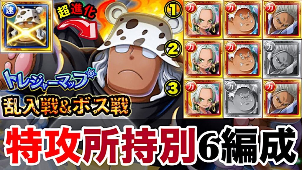 【トレクル】トレジャーマップvs.ベガパンク!最新特攻所持別6編成!乱入戦&ボス戦!【OPTC】【ONE PIECE】