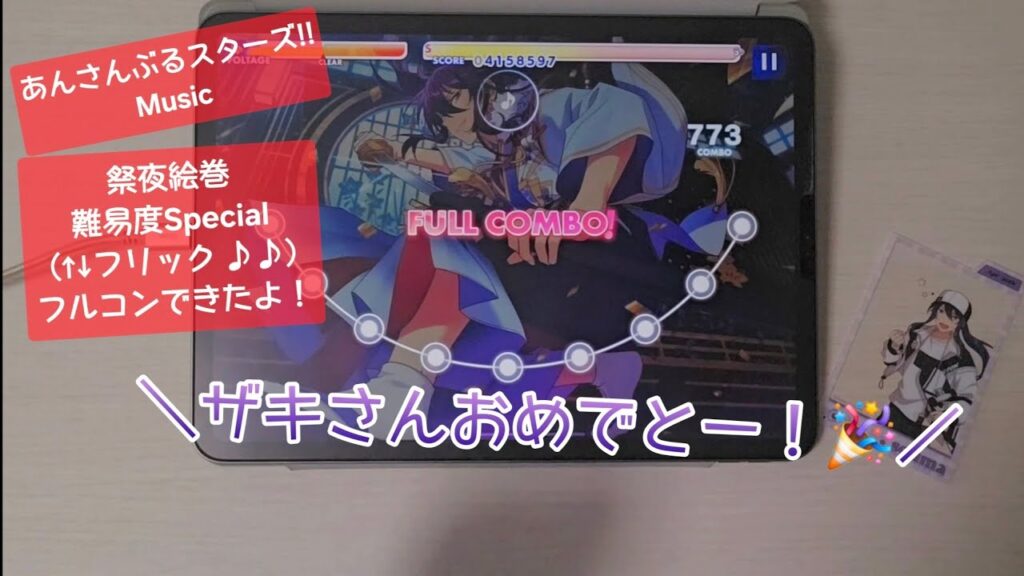 『あんさんぶるスターズ!!Music』の『祭夜絵巻』難易度 Special(↑↓フリック ♪♪)を遊んでみたよ(*´˘`*)
