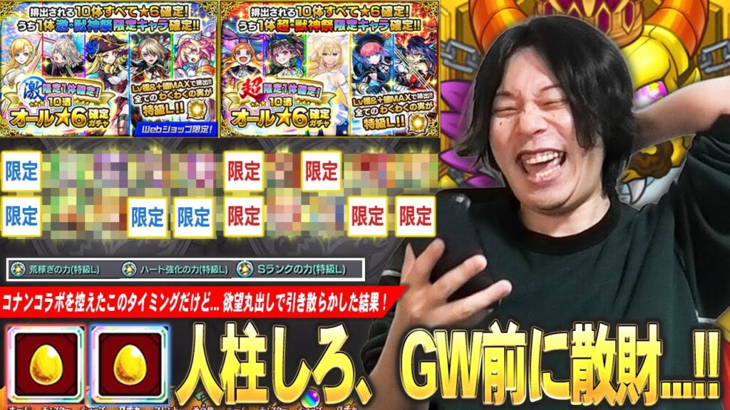 ▼ 今回は「しろ」が9,800円ガチャ×2「超激・限定1体確定!10連オール★6パック」を引きます!