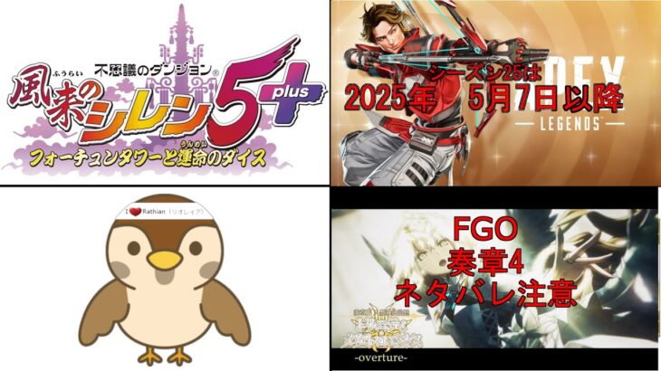 優先度は高い順からAPEX、FGO、風来のシレン5plusです。