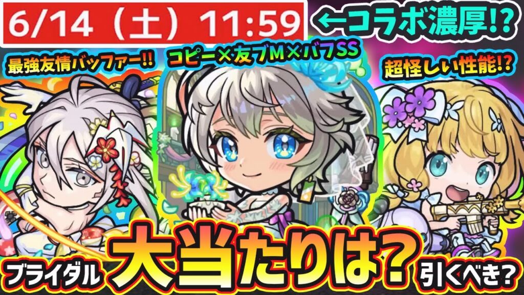 【モンストニュース(5/29)】※これは…6月後半もコラボ濃厚に。今年も『モンストブライダルα5』開催決定!!新キャラ『三途α・物干し竿α・チヨα』大当たりは?引くべき?【けーどら】 gameman 6か月前 引用: ◆メンバーシップ登録 → ◆X(旧Twitter) → ◆Instagram → ◆撮影/編集/企画/サムネ:けーどら 【使用音源】 ▪️騒音のない世界 – beco: #モンスト #けーどら