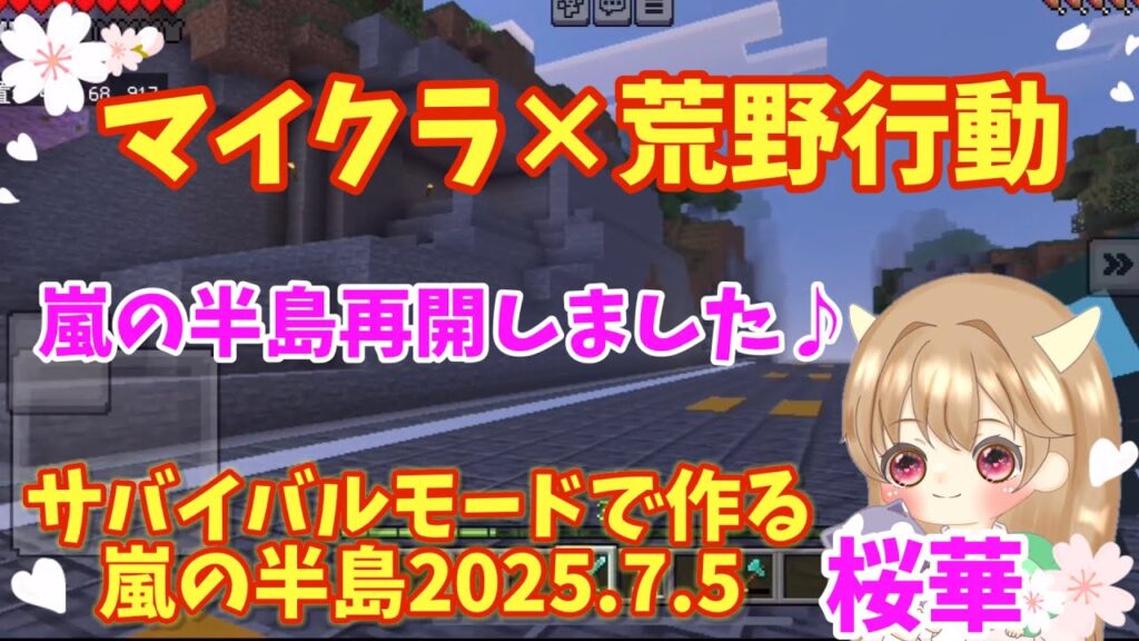 【マイクラ×荒野行動】サバイバルモードで作る嵐の半島再開♪2025.7.5#マイクラ #荒野行動
