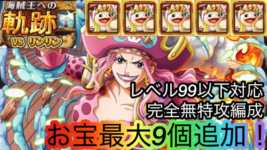 [トレクル]海賊王への軌跡VSリンリンレベル99以下無特攻編成紹介!お宝9個追加で亀ミッションも楽々クリア![OPTC][海賊王への軌跡]