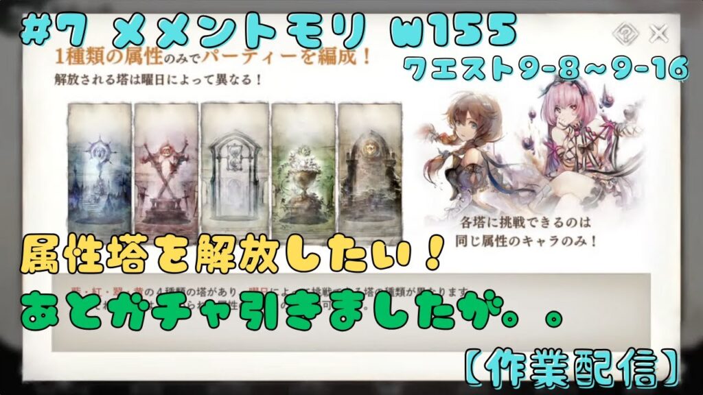#7【メメントモリ_w155/作業配信】サブ垢でまったり遊びます(7日目/クエスト9-8~9-16)