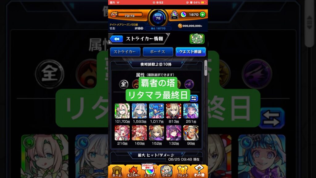 【モンスト】覇者の塔リタマラ最終日#モンスト#覇者の塔#リタマラ#shorts