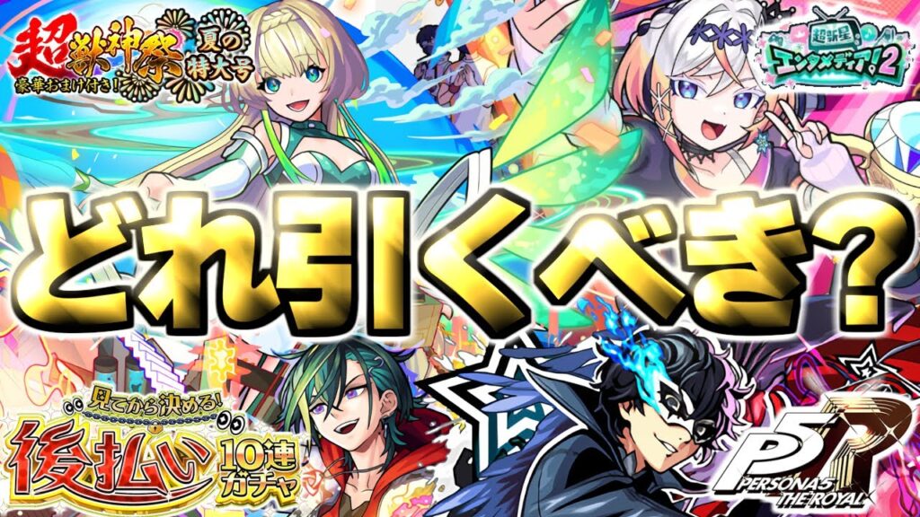 【モンスト】※どうするんだこれ…最優先で引くべきガチャはこれだ!《夏の特大号!超獣神祭》《見てから決める!後払い10連ガチャ》《ペルソナ5 ザ・ロイヤル》【2025年9月ガチャまとめ】 gameman 3か月前 おためしメンバーシップ作りました 【画像引用&関連動画】 ・モンストニュース[8/28]モンストの最新情報をお届けします! ・ルルネーヴェ、バービッド、リリネーヴェ 使ってみた! 素敵な画像、BGM、効果音などなど感謝です🙇 ・Audiostock…【 】 ・DOVA-SYNDROME…【 】 ・MusMus…【 】 ・OtoLogic…【 】 ・びたちー素材館…【 】 ▶チャンネル登録お願いします!⇒ ▶良ければTwitterも…⇒ #モンスト #ガチャ #まとめ