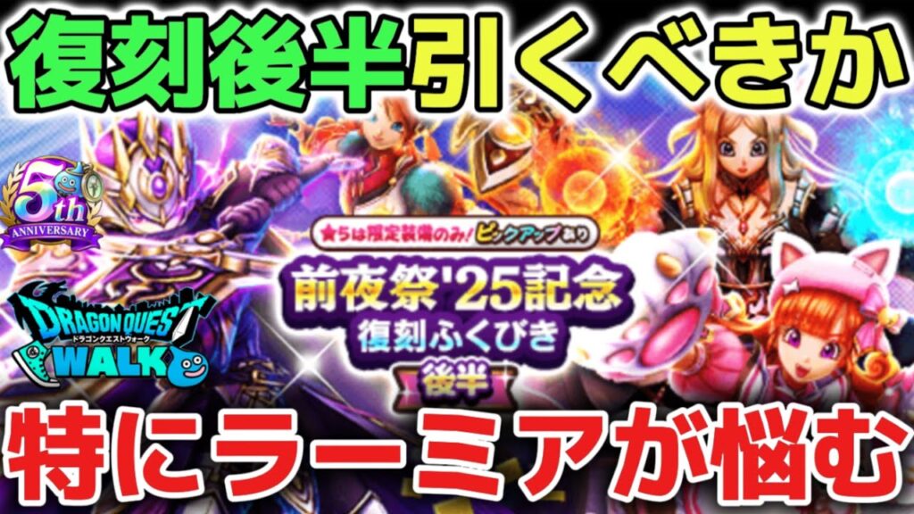 【ドラクエウォーク】復刻ガチャ後半は引くべきか?ぶっ壊れ武器ばかりで特にラーミアの鞭の判断が難しすぎるぞ!ww【DQウォーク】