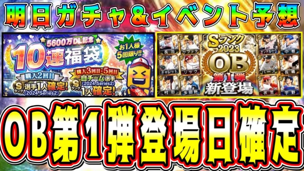 【プロスピA】OB第1弾登場日確定!?明日ガチャ&イベント予想!激熱更新くるか!?【プロ野球スピリッツA・メジャスピ・WS・アニバ・セレクション・10周年・大谷翔平】