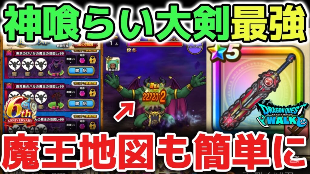 【ドラクエウォーク】神喰らい大剣の最強の使い方オススメです!魔王地図も簡単に攻略できるようになりました!【DQウォーク】