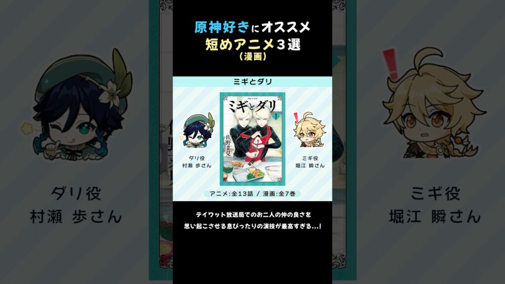 原神が好きな方に声優さん繋がりで個人的にオススメしたい漫画原作の短めアニメ3選です。