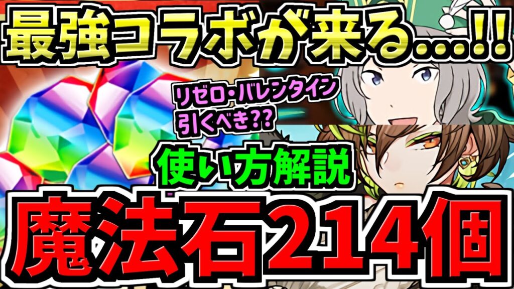 【魔法石214個配布】最強コラボが来る!無料魔法石214個の賢い使い方解説!リゼロ・バレンタインガチャは引くべきか否か【パズドラ】 gameman 1日前 #パズドラ 質問・リクエストはコメント欄へ 高評価・チャンネル登録よろしくお願いします! 0:00 高評価よろしくです! 1:02 無料魔法石214個の内訳 3:01 最強コラボが来る 4:49 どのガチャ引くべきか。使い方解説 新人パズドラVtuberとしてデビューしました! ✕(Twitter) ビジネス専用連絡先 hoshinonia1103@gmail.com 楽曲提供:株式会社アイリング #攻略 #立ち回り #星野ニアのパズドラ