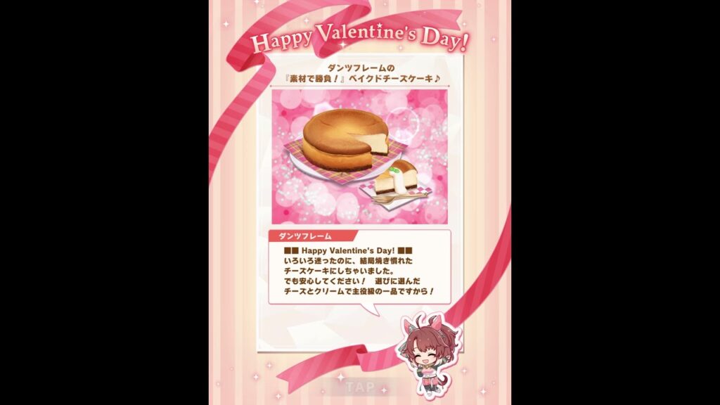 ウマ娘プリティーダービーのバレンタインイベントより、ダンツフレーム(勝負服)のチョコレートの贈り物