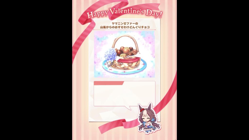 ウマ娘 バレンタイン チョコ ヤマニンゼファー #ウマ娘プリティーダービー #ウマ娘 #ヤマニンゼファー gameman 2日前 ウマ娘プリティーダービーのバレンタインイベントより、ヤマニンゼファー(勝負服)のチョコレートの贈り物