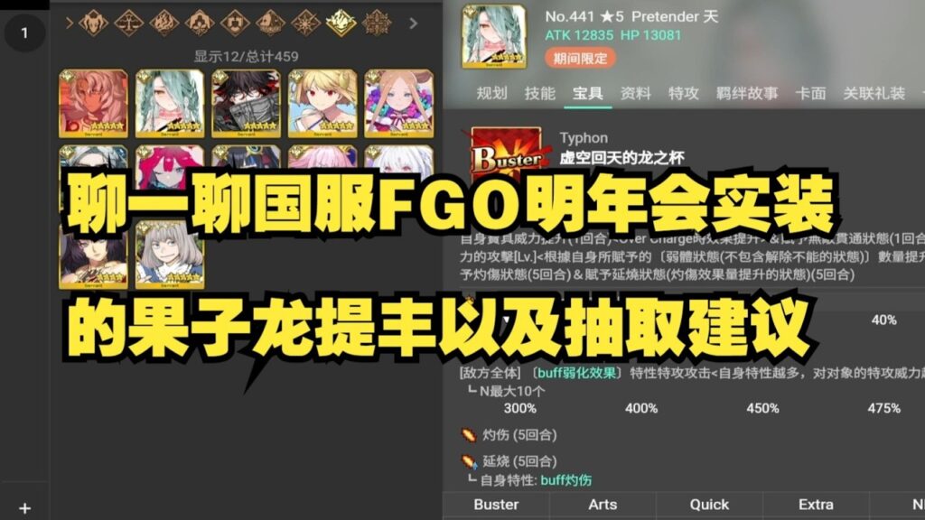 聊一聊国服FGO明年会实装的果子龙提丰以及抽取建议 gameman 6時間前 🎮 本频道专注于国服 / 日服《Fate/Grand Order(FGO)》的深度解析与实战分享 📊 持续更新从者强度评测、抽卡推荐与卡池性价比分析 🧠 详细讲解高难本、回忆关、柱子战与活动机制,帮助玩家稳定通关 💎 面向月卡党、微氪与非酋玩家,提供长期资源规划与抽卡思路 🔥 结合版本节奏,前瞻FGO未来走向,陪你一起走过每一个版本 #FGO #国服FGO #FGO从者解析 #FGO抽卡推荐 #手游攻略