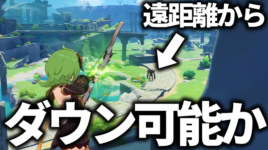 原神 遠くから矢を放って遺跡守衛のコアに当てダウンさせることはできるのか検証してみました。