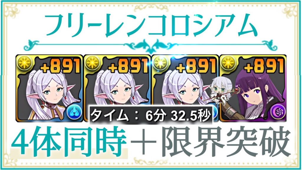フリーレン3体とフェルンの+限界突破突破をずらすだけで6分台で周回可能!