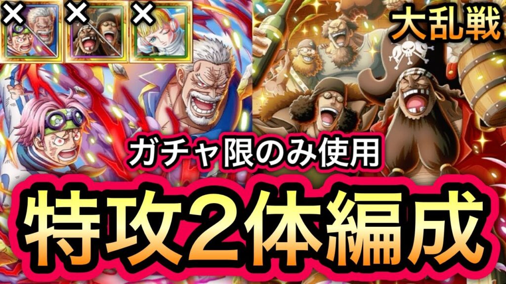 【トレクル】大乱戦 VS 黒ひげ海賊団 ガープ&コビー、黒ひげ&クザン、ひばりなし!!,ガシャ限のみ使用!!特攻2体編成!!【海賊王への軌跡 VSシリュウ】【海賊祭グランドパーティ】【OPTC】