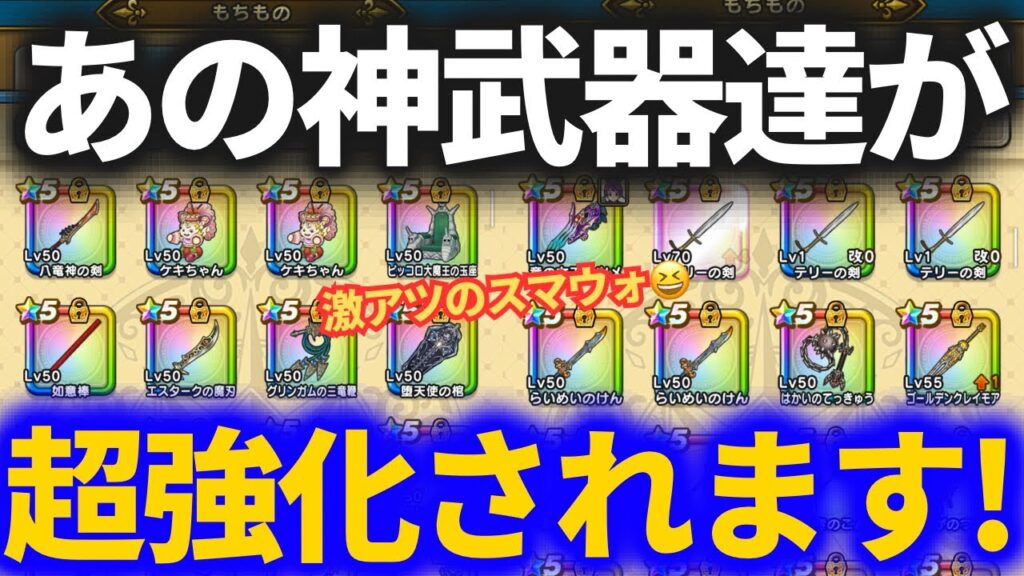 【ドラクエウォーク】コレは激アツ!!あの神武器が超強化されます!!【スマートウォーク】 gameman 2日前 この動画で利用している株式会社スクウェア・エニックスを代表とする共同著作者が権利を所有する著作物及びスギヤマ工房有限会社が権利を所有する楽曲の転載・配布は禁止いたします。 (C) ARMOR PROJECT/BIRD STUDIO/SQUARE ENIX All Rights Reserved. (C) SUGIYAMA KOBO