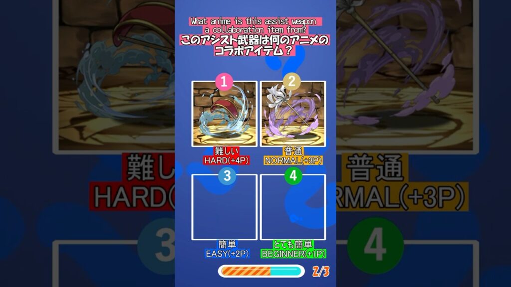 This video is a quiz where you guess the anime that collaborated with the game Puzzle & Dragons based on the assist weapons.