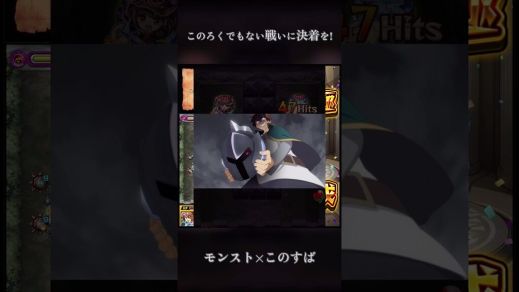 アニメではシーズン1第6話「このろくでもない戦いに決着を!」からのクエ。カズマたちの住むアクセルの街の近隣にある廃城を根城にしていたら、その城を毎日毎日爆裂魔法の的にされたベルディアが街に攻めて来て戦闘に。追加イベの「放て!毎日爆裂魔法」がそのエピソード。動画では各シーンやセリフのきっかけになったキャラで抜けるようにしているのですが、惜しむらくはカズマのSSの追撃が攻撃力の吸収なので追撃を動画に活かすのが難しいこと、、、