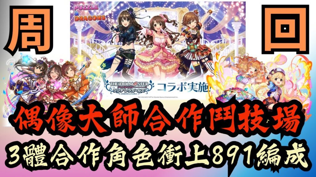 【パズドラ】【PAD】偶像大師合作鬥技場 三體合作角色升891編成 シンデレラガールズ スペシャルステージ育成用編成 3枚抜き