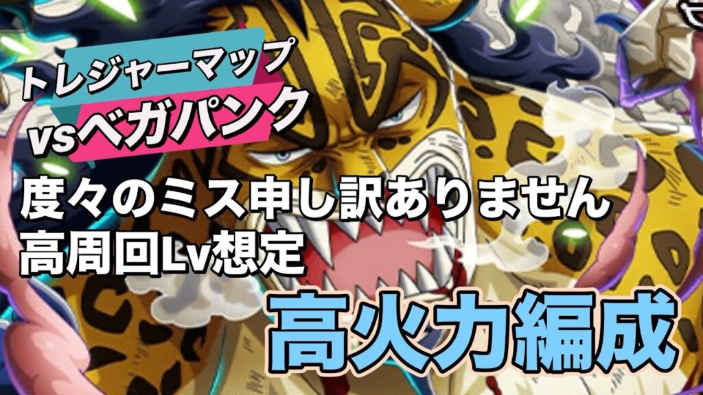 【トレクル】高周回Lv対応!高火力編成!トレジャーマップvsベガパンク