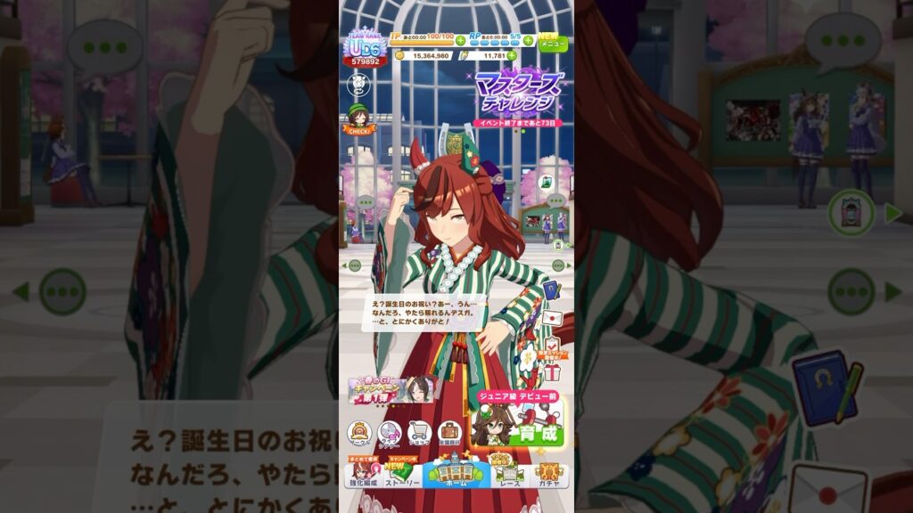 ウマ娘 プリティーダービー ナイスネイチャ(ネガイノカサネ)の誕生日ボイスパート1 照れながらも誕生日のお祝いをされてお礼を言うネイチャ先生