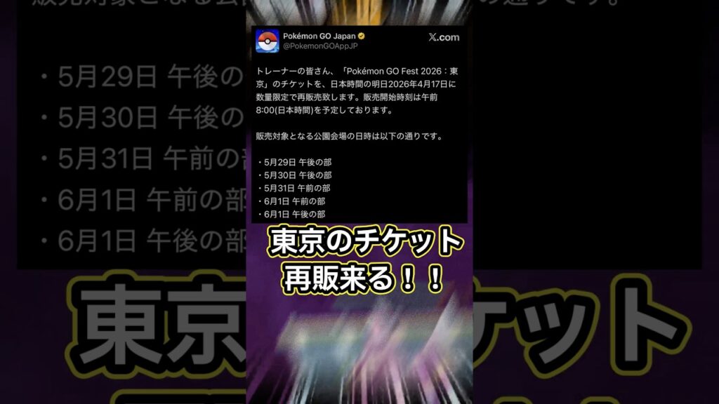【ポケモンGO🔥】待ちに待ったGOフェス東京のチケット再販が来る!待ちに待ち過ぎて逆にもう… #ポケモン #ポケモンgo #shorts