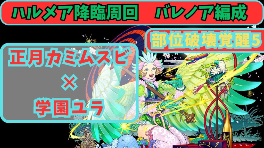 【パズドラ】ハルメア降臨周回 バレノア編成 学園ユラ×正月カミムスビ
