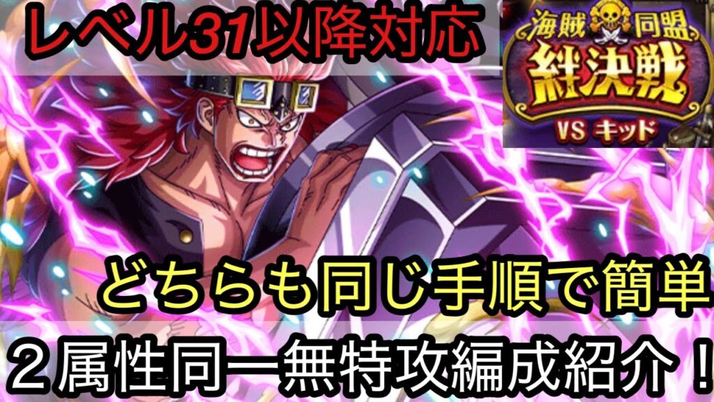 [トレクル]絆決戦VSキッド無特攻2属性同一編成紹介!レベル31以降対応かつ手順も全く同じだから超簡単![OPTC][絆決戦]