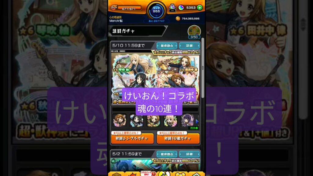 #モンスト #モンストガチャ #モンストコラボ #けいおん #shorts 金髪の子が良かったな。