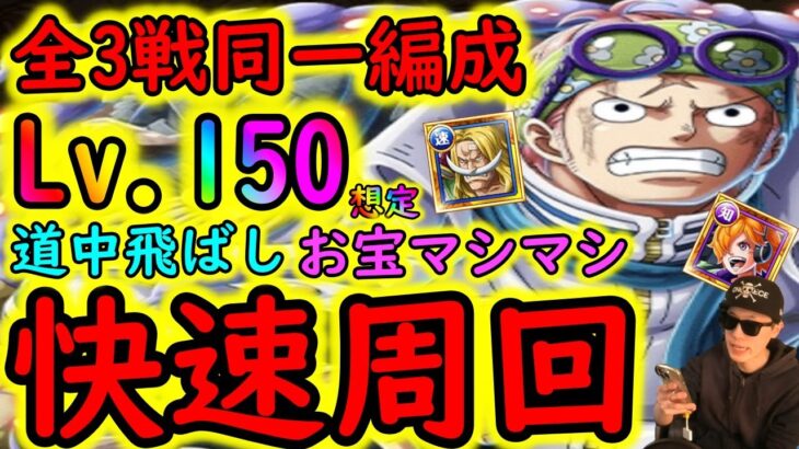 [トレクル]海賊王への軌跡vsコビーLv150想定! 道中スキル飛ばし/全3戦同じ編成で切り替え不要/快適お宝マシマシ特効周回編成[vs白ひげ/リリス/コビー][OPTC]