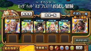 【トレクル】エッグヘッドスゴフェス!!お試し冒険 【ONE PIECE】【トレジャークルーズ】 #トレクル #お試し冒険 #エッグヘッドスゴフェス #OPTC #ONEPIECE #ワンピース Twitter: YouTube: