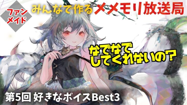 メメントモリの領主たちでいろいろ話せる場所が欲しい!ってことで始まりまった皆で作るメメモリ放送局!最新情報のチェックや皆さんからの動画やお便り、イラスト紹介などをやっていきます! 今回は第5回、皆さんの「好きなボイスベスト3」を紹介していきます!お題のメッセージはマシュマロからお願いします。 —–投稿先はこちら—– 【お題メッセージ投稿先】 今回のお […]