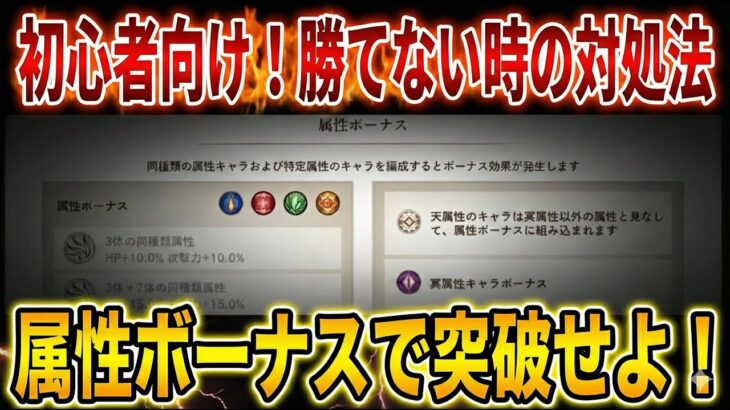 メメントモリの初心者向け情報です! 今回は、初心者向けということで、 属性ボーナスの活用について解説します! 勝てない時の対処法として、ぜひ押さえておいてください。