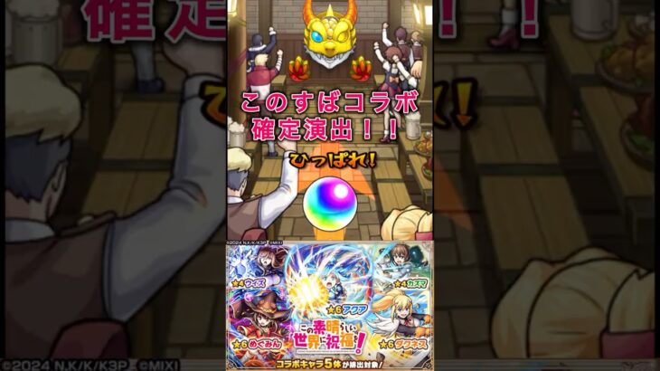 このすばコラボの確定演出です。 ご視聴ありがとうございました。 チャンネル登録お願いします。 #モンスト